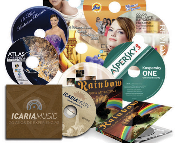 Impresión digital a full color en CD y DVDs con sustratos especiales.