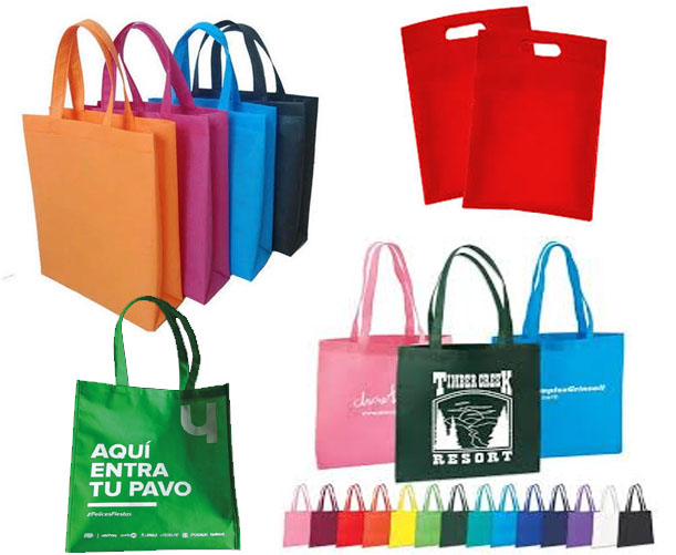 Con impresión en serigrafia con tinta textil, material notex de 80 gr. termosellado o cosido.