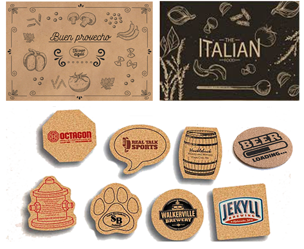 Elaboramos individuales, posavasos en papel ecológico en todas las formas, medidas y colores